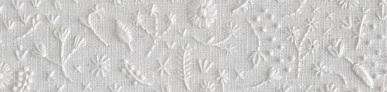 I particularly love working with white cotton floss on white linen. While it can be a bit challenging on the eyes - I find myself taking frequent breaks - the subtle texture is so pleasing to the eye.