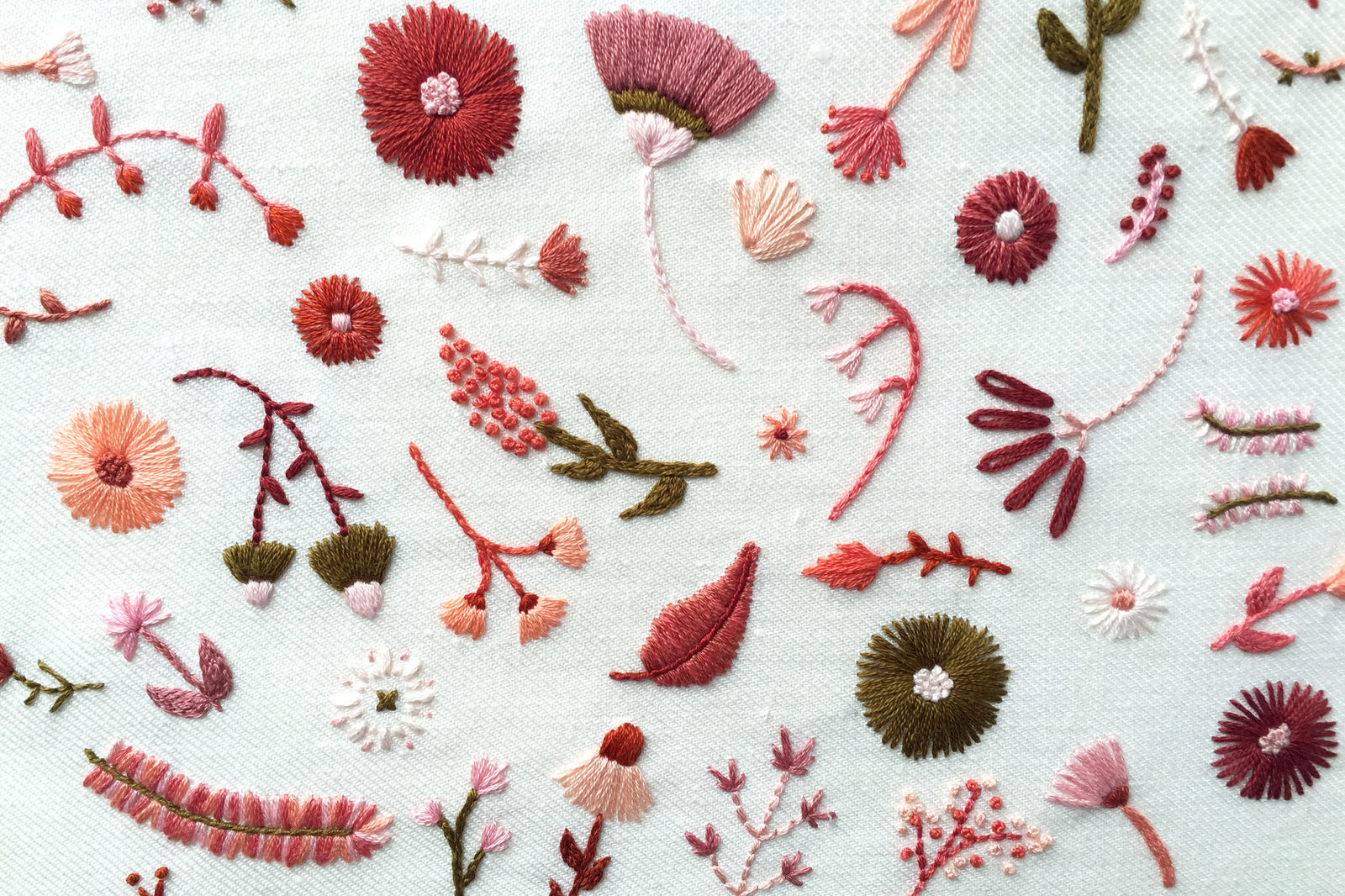 Yumiko Higuchi is an extremely talented Japanese embroidery artist who creates beauitful hand-stitched motifs and floral patterns with a style all her own. What most distinguishes Yumiko’s work is the way she combines wool thread and cotton embroidery floss in her pieces. The wool adds a more three-dimensional quality to her work.
