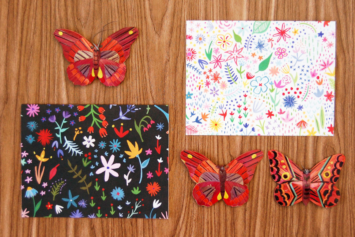 My "Happy Birthday Rainbow Garden" card quickly became a bestseller when I released it a few months ago, so I worked to expand this design idea to both a patterned note card and an art print. Again, these designs were hand-painted with gouache.